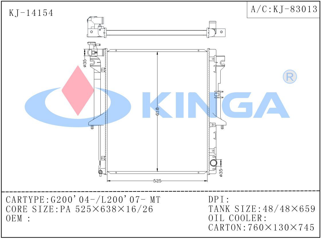 Baj popilè: oto/machin radyatè aliminyòm pou mitsubishi g200′ 04 l200′ 07 mt, manifaktirè, wholesale, bon jan kalite